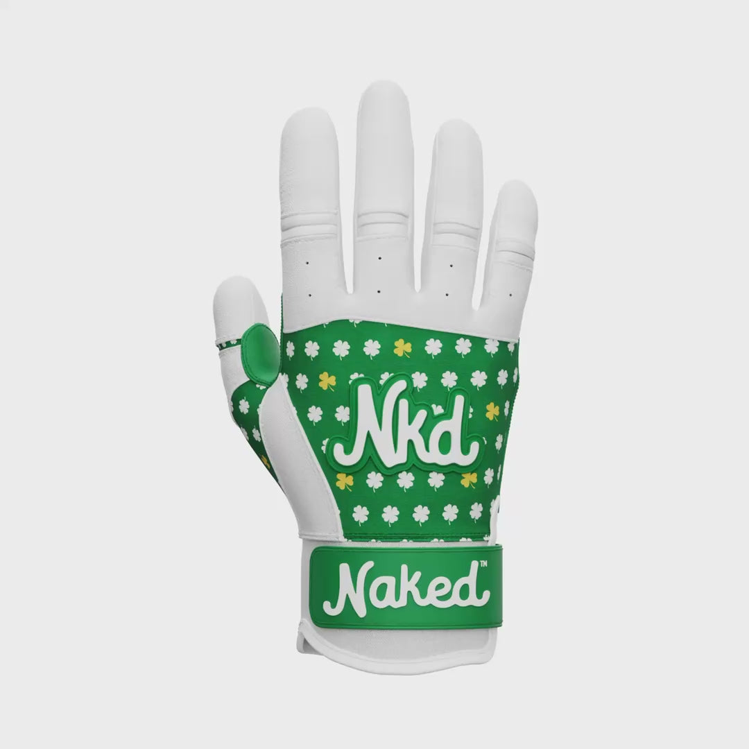 Who doesn't want a little luck on their side at the plate? Good news, the Shamrock Batting Gloves have luck to spare. Constructed with premium cabretta leather, fortified stitching, and deliberately placed leather reinforcement at seams and friction points. As with our grips, our batting gloves have been thoughtfully and intelligently designed for durability and the incredible comfort and barely there feel you've come to expect from Naked.