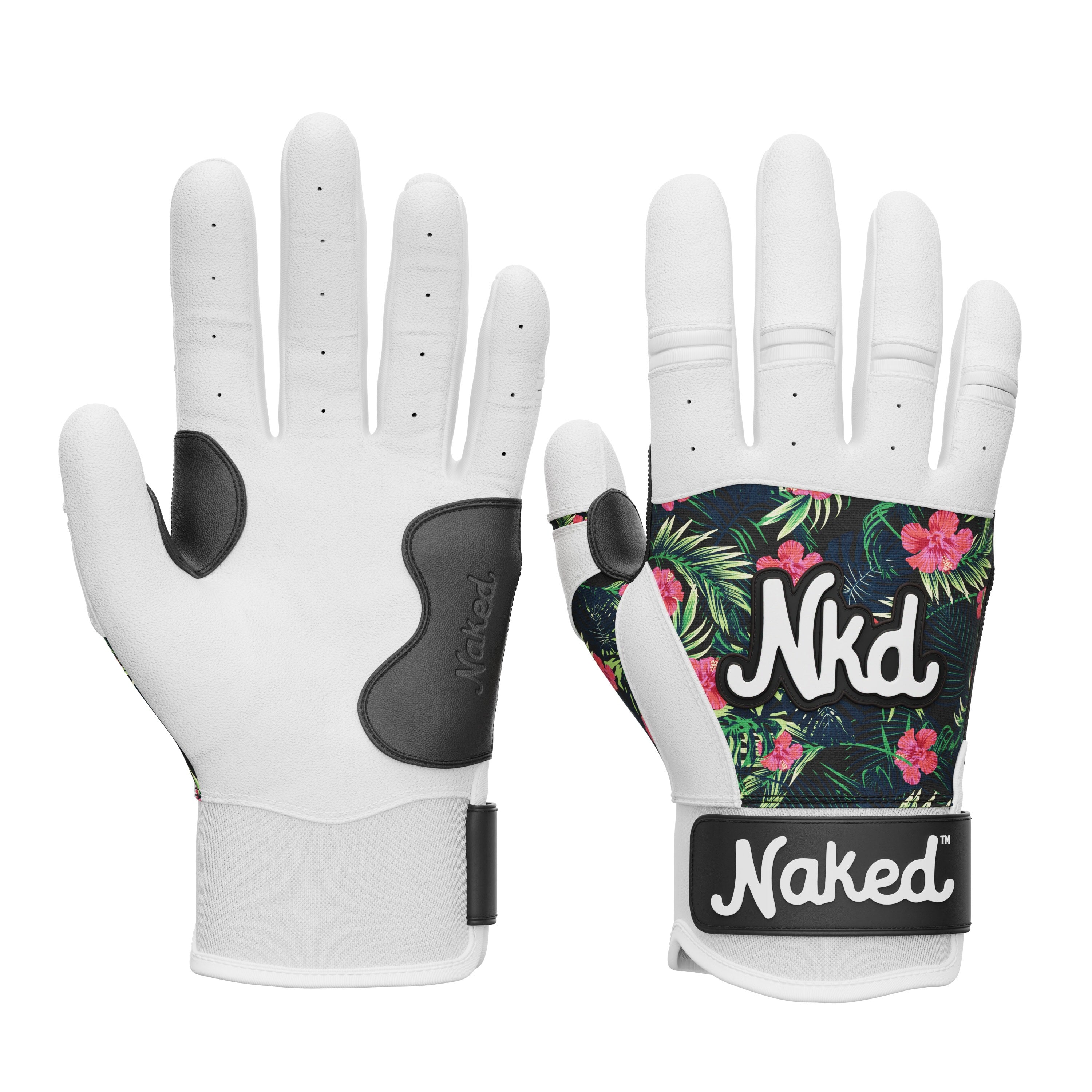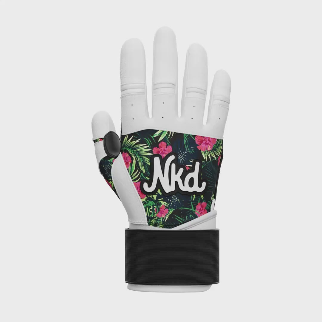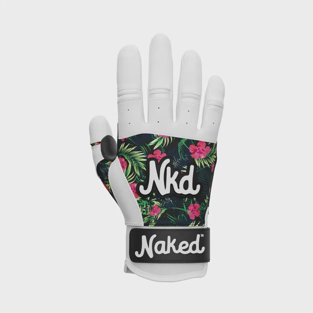 The Tropics batting gloves brings all the vibes. Constructed with cabretta leather, fortified stitching, and deliberately placed leather reinforcement at seams and friction points. As with our grips, our batting gloves have been thoughtfully and intelligently designed for durability and the incredible comfort and barely there feel you've come to expect from Naked.